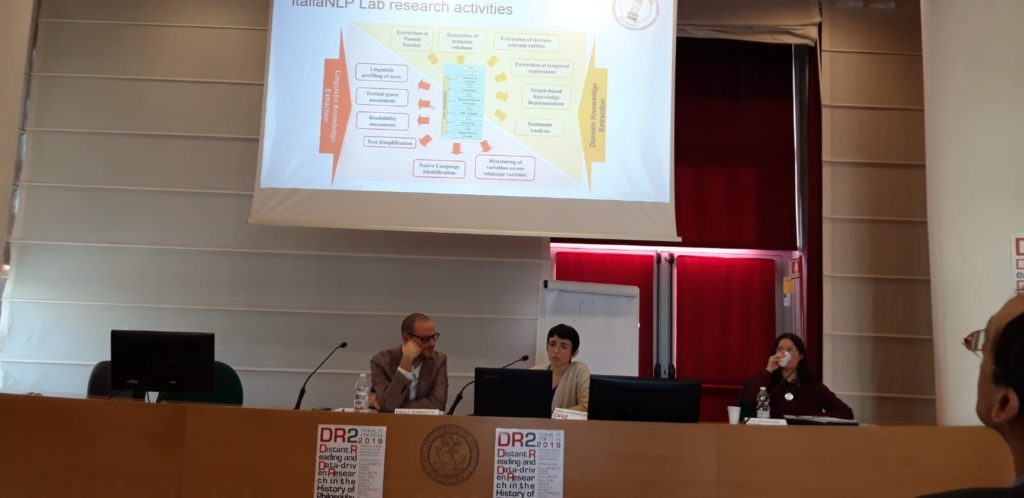 The second session was closed by Giulia Venturi (CNR, Pisa), who brought to the conference the point of view of computational linguistics by giving a talk on Natural Language Processing methods and instruments for the extraction of information from domain corpora.