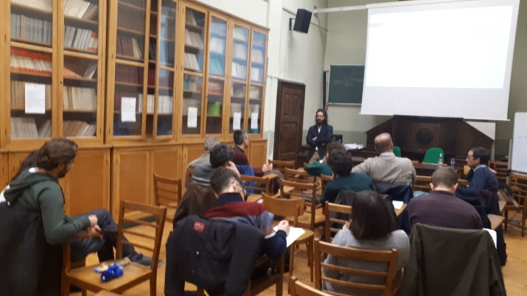 On Thursday 14th Eugenio Petrovich gave an informal seminar in Italian, entitled “Approcci reticolari in storia della filosofia analitica contemporanea: reti di citazioni e reti di acknowledgments” (Network approaches in the history of contemporary analytic philosophy: citations networks and acknowledgments networks) (picture on the left)